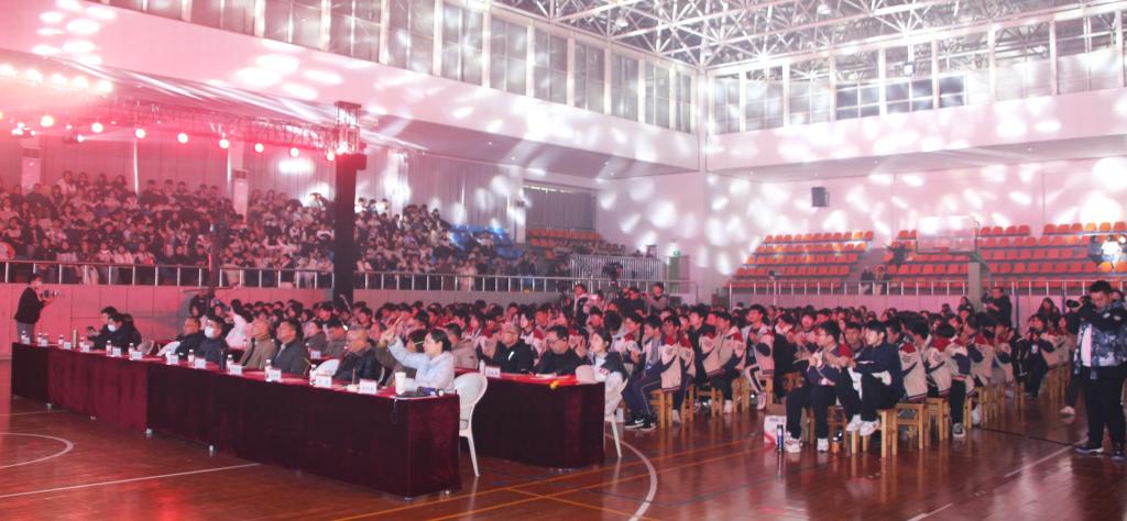 汇演在气势恢宏的开场歌舞《节日欢歌》中拉开序幕。学校党委书记李明生致新年贺词。他回顾了2025年学校在党建品牌、技能大赛、专业发展、产教融合等方面取得的丰硕成果,肯定了全体师生的努力与贡献,并勉励大家在新的一年里坚定文化自信,激扬青春力量,共同谱写学校高质量发展新篇章。