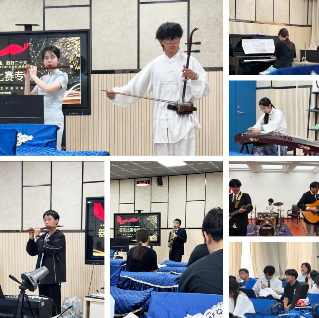 5月21日下午,由艺术设计系承办的“共奏和谐乐章,践行全会精神”器乐比赛在服装实训楼208教室精彩上演。选手们以精湛技艺奏响《我和我的祖国》等经典,机械工程系团队合作摘得冠亚军,叶罗明同学的架子鼓独奏《太阳照常升起》点燃全场,传统民乐演奏更彰显了文化自信。