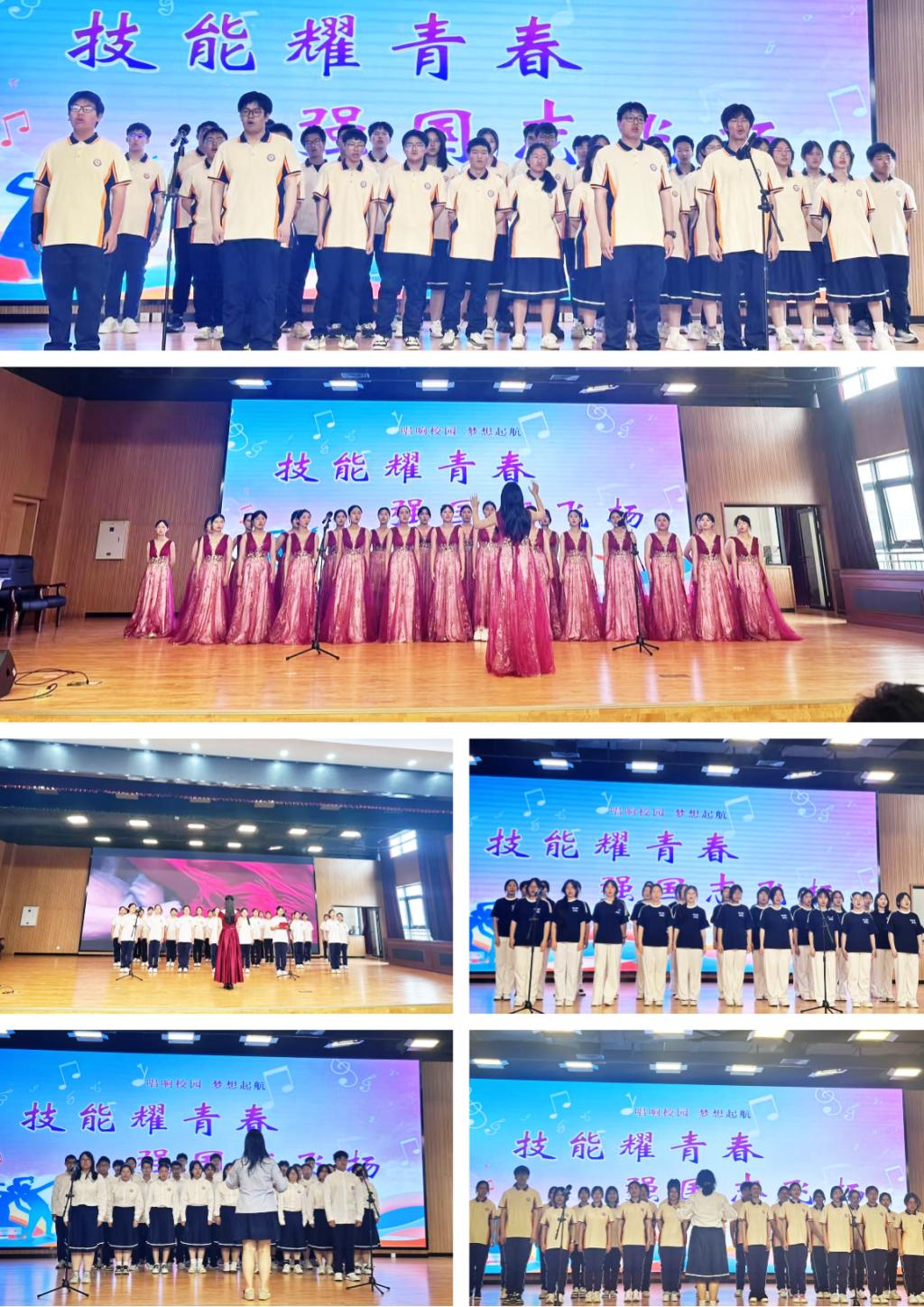 团委承办的“中专好声音”比赛,以校歌凝聚班级力量,“班班有歌声”响彻校园。6月9日举行的决赛为艺术节闭幕式压轴。十强选手在舞台倾情放歌,《我爱你,中国》等经典旋律唱响爱国心声。最终,毛天宇、宋钱熙、沈怡彤分获金银铜奖。闭幕式现场气氛热烈,各赛项优秀成果集中展演,2362班深情朗诵传递对二十届三中全会精神的理解,艺术设计系2272班演绎的校歌《风雨年华》更将全场气氛推向顶峰。