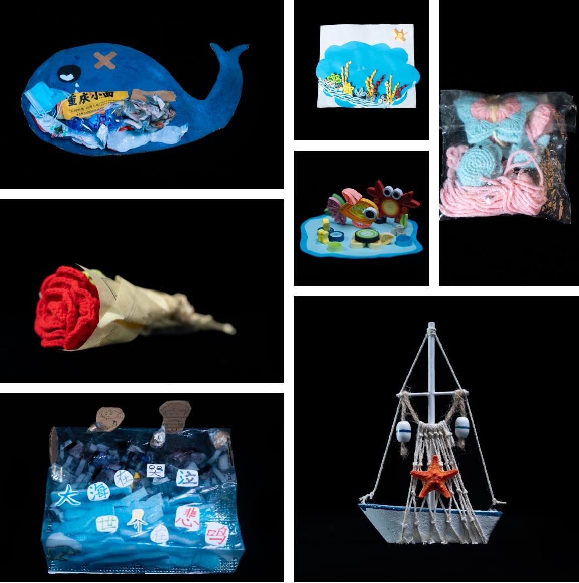 在财经商贸系承办的以“海洋生态环境保护”为主题的学生艺术实践工作坊活动中,同学们围绕“海洋文化,海洋强市”、“能源资源节约和生态环境保护”主题,结合专业技能,发挥创意巧思,精心创作的39件作品各具匠心——剪纸镂刻南通地标,废旧材料化身风力发电机模型,布艺、黏土创作等无不体现环保理念与青春巧思。