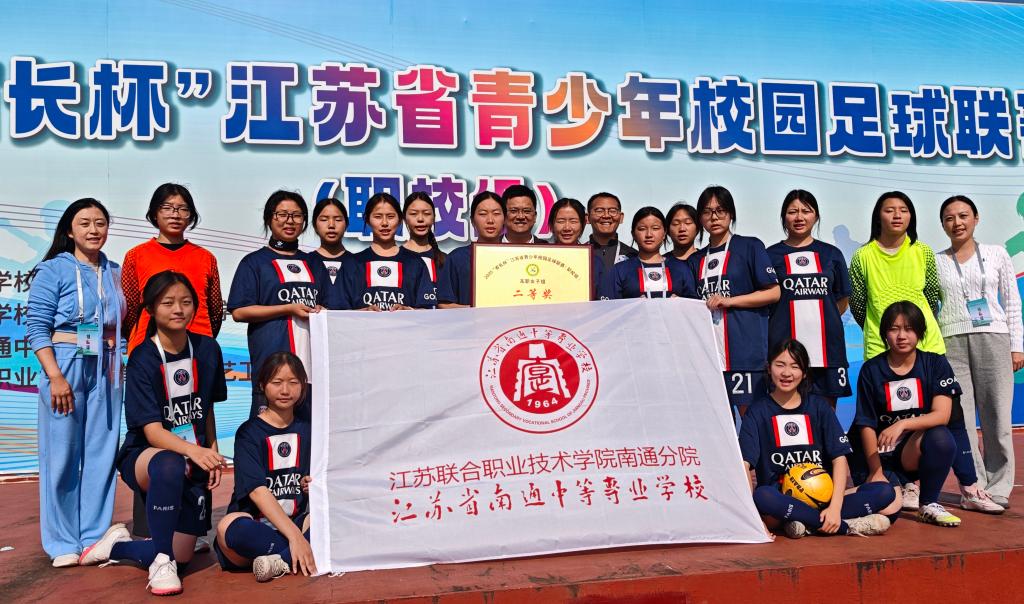 近日,2025“省长杯”江苏省青少年校园足球联赛(职校组)暨江苏联合职业技术学院首届足球联赛总决赛在南京交通中等职业学校落幕。南通分院女子足球队作为通泰片区的优秀代表,在总决赛中凭借出色的表现,最终荣获总决赛第六名、二等奖的佳绩,展现了南通分院学子昂扬的精神风貌和扎实的体育素养。