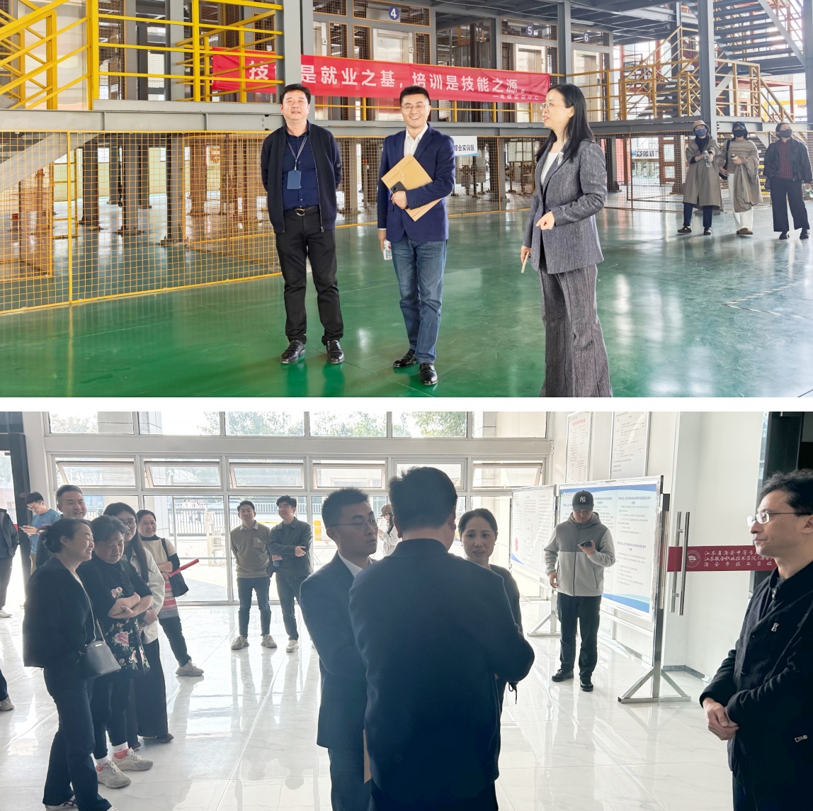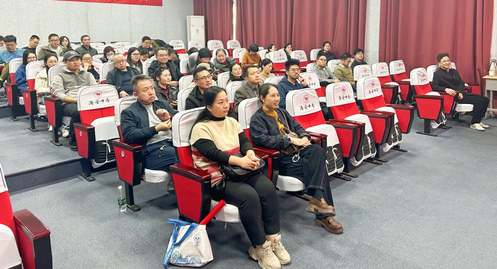 14日下午,培训班学员首先抵达海安中专,参观了法治安全馆与实训基地。法治安全馆通过图文展板、情景模拟与互动体验等多种形式,系统展示了法治普及、犯罪预防及未成年人权益保护等内容,呈现方式生动直观,富有教育意义。随后,海安中专史有军副校长为全体学员作了题为《创新职教育人模式 铸魂工匠精神》的专题讲座,深入分享了海安中专在育人模式创新与工匠精神培育方面的实践与思考。