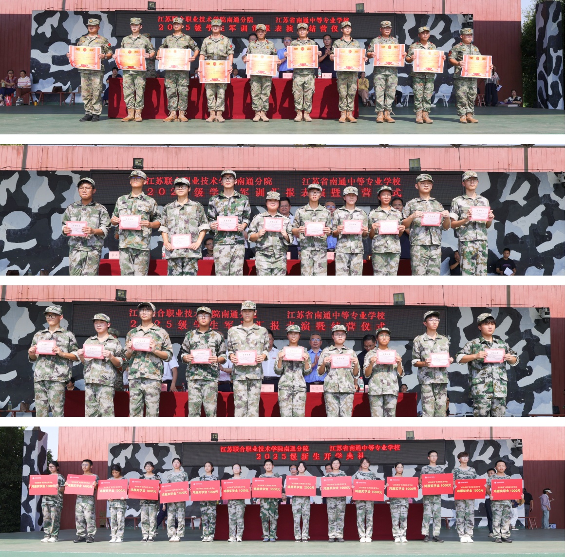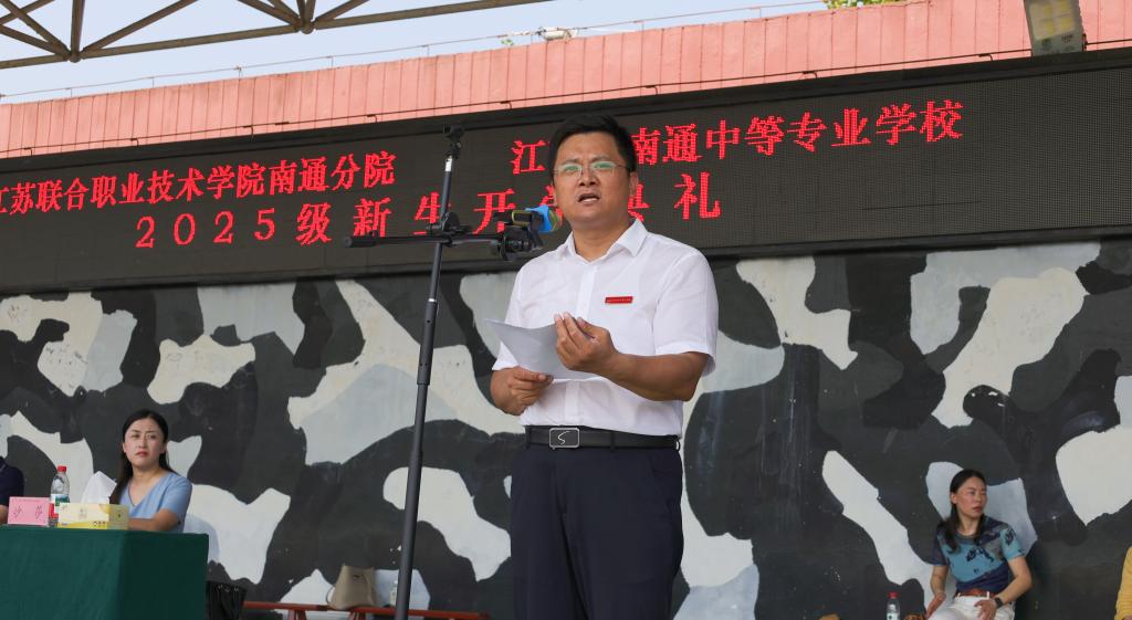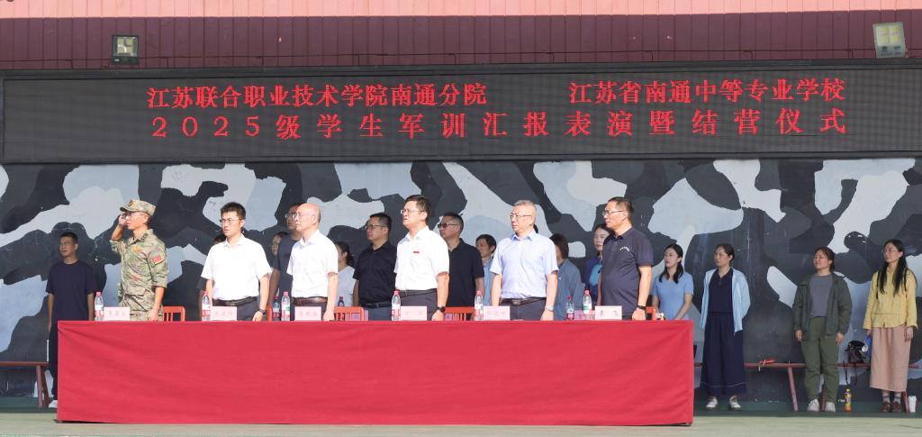 9月6日上午,我校2025级新生军训结营仪式暨开学典礼在南通市中小学生素质教育实践基地隆重举行。校领导李明生、万军、缪俊峰及各职能处室、系部负责人,家长代表、教官代表等出席活动并在主席台就座。副校长朱建锋主持仪式。