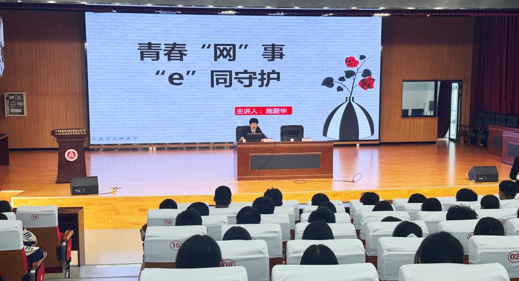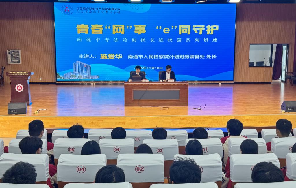11月10日,我校举行法治副校长进校园活动。活动特邀南通市人民检察院计划财务装备处施爱华处长,为师生带来“青春网事,e同守护”主题网络安全法治教育讲座。校学工处副处长沈国强主持本次活动。