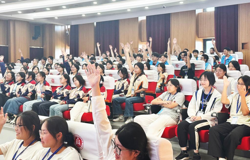 讲座尾声的知识竞答环节将现场气氛推向高潮。同学们围绕校园霸凌应对、反诈要点等积极抢答,反应热烈。梅昊宇教导员在此基础上提炼出“知法明边界、懂法会避险、守法守底线”三项核心法治素养,鼓励同学们用法律武器守护自身成长。
