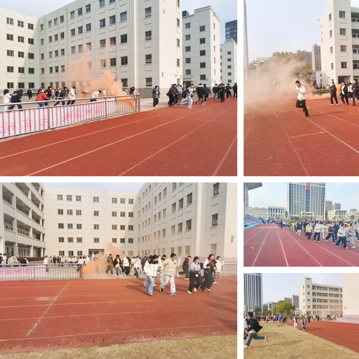 下午3时35分,警报声响起,演练正式开始。校园广播同步发出疏散指令,各班学生在老师指挥下,按照预定路线,有序从各安全通道向操场区域撤离。楼道转角、楼梯口等关键位置均有值守教师全程引导,提醒学生不推挤、不喧哗、不折返,整个过程紧张有序、高效规范。